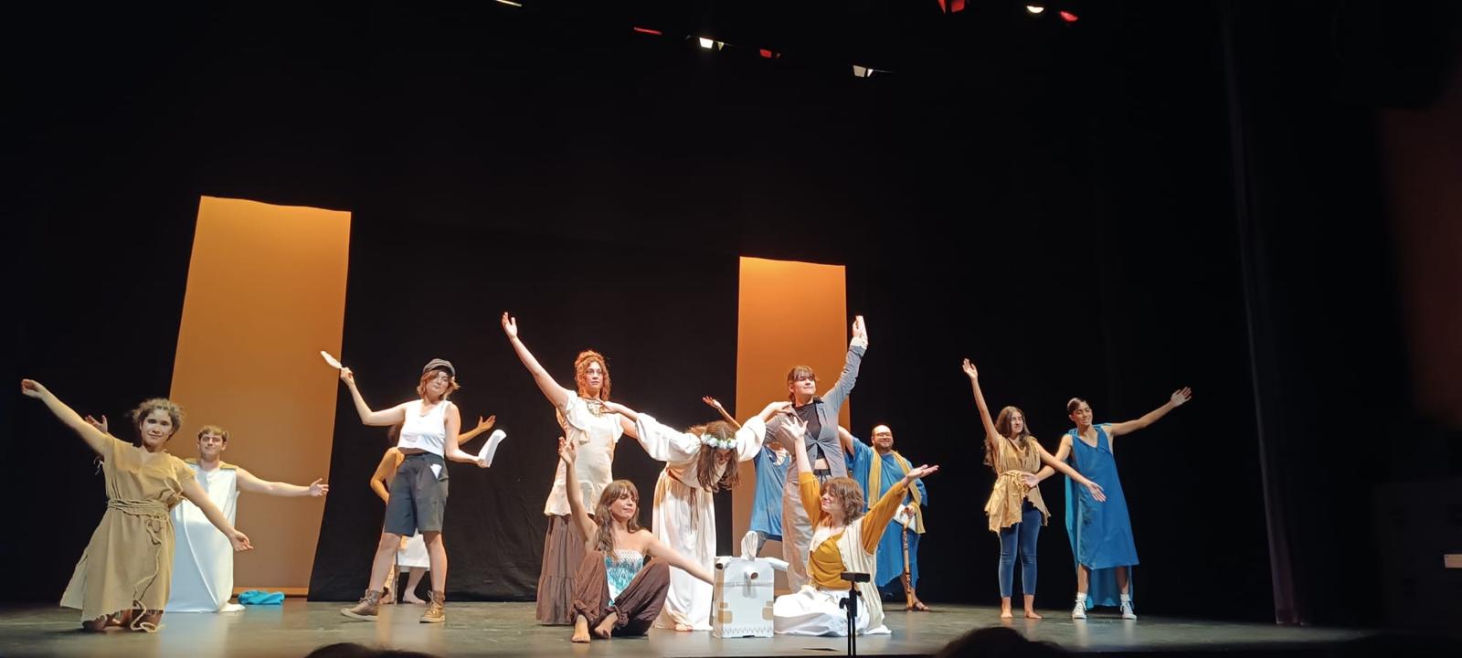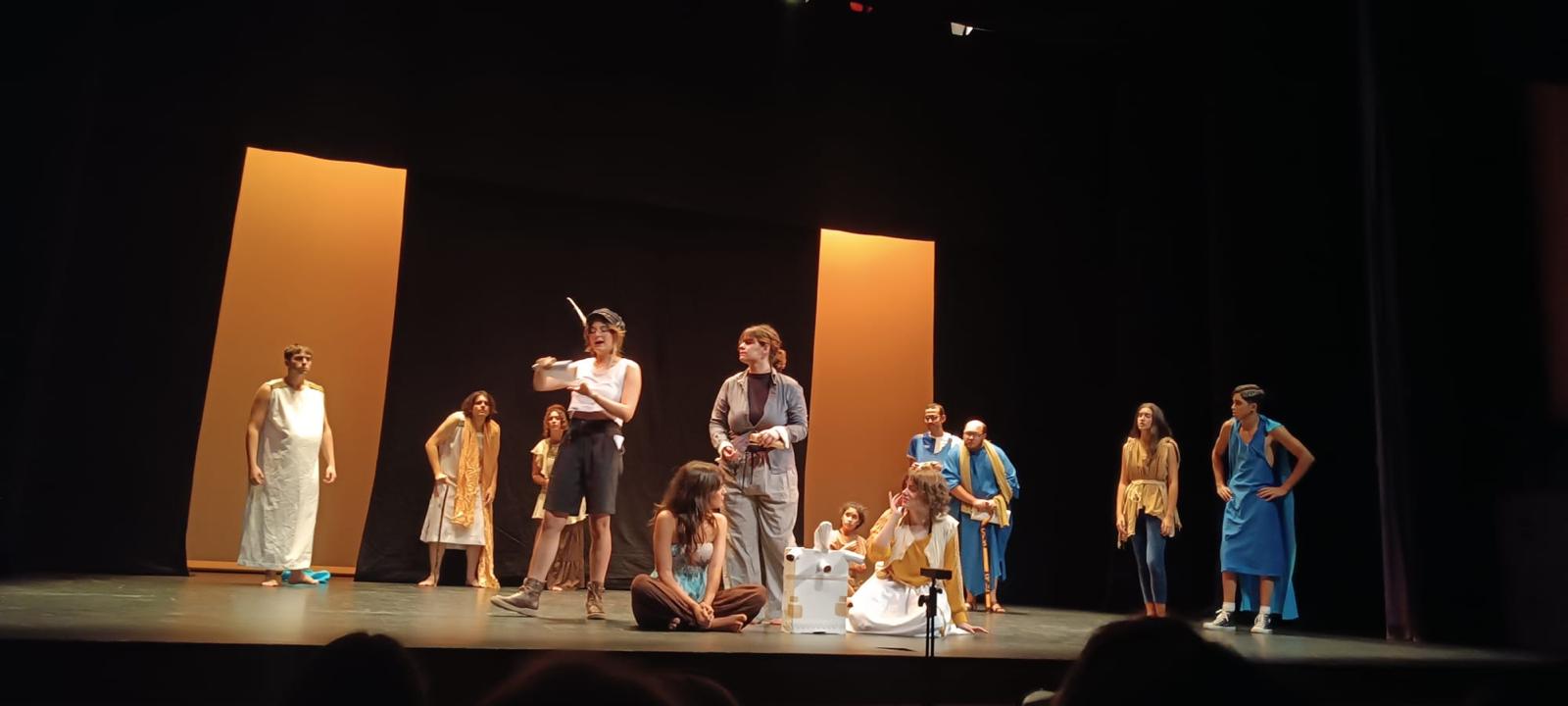 JOSE Y DAVID JUNTO A LOS COMPAÑEOS DE TAETRO INTERPRETAN EL TEATRO GRECOLATINO PATTER ILLIE